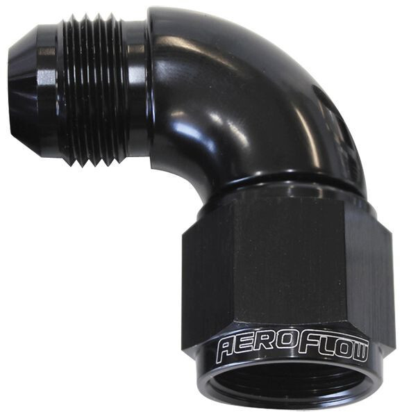 Aeroflow Full Flow Adapter -16AN Female to -16AN Male 90-Degree Black AF543-16BLK