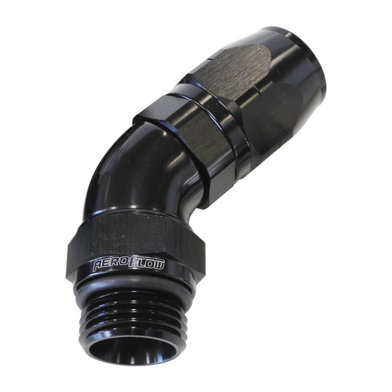 Aeroflow 550 Series Full Flow Hose End -08ORB Male to -06AN Hose 45-Degree Black AF544-06-08BLK